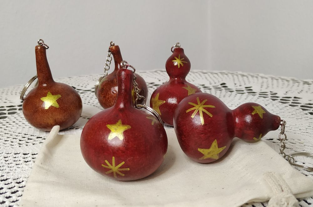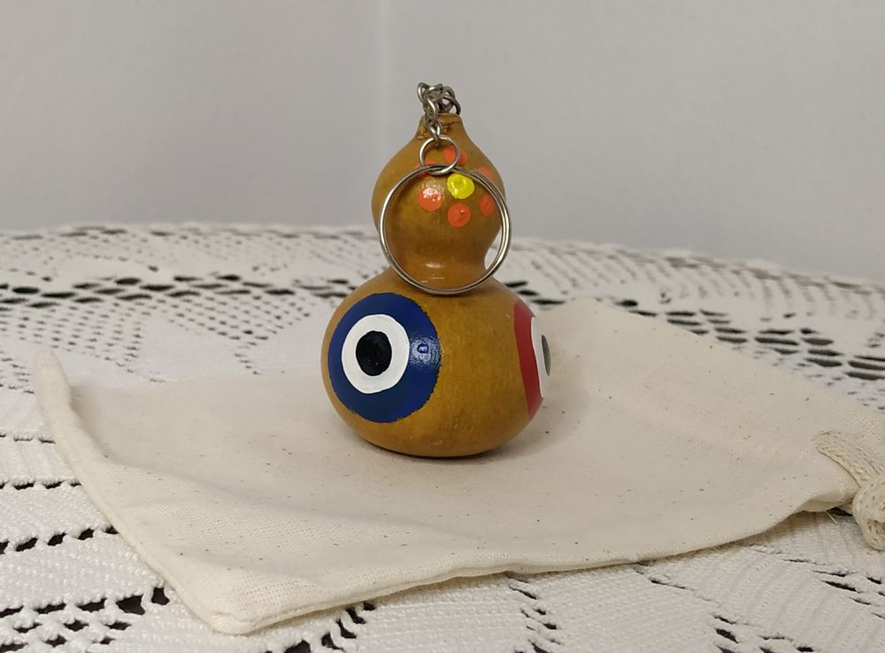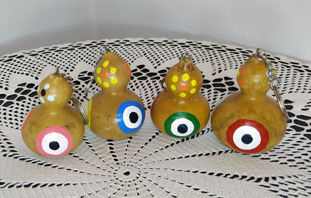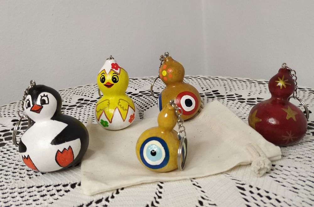 Doğal mini su kabağından el emeğiyle yapılan ürünlerimiz anahtarlık, çanta süsü, araba süsü olarak kullanılabilmektedir.